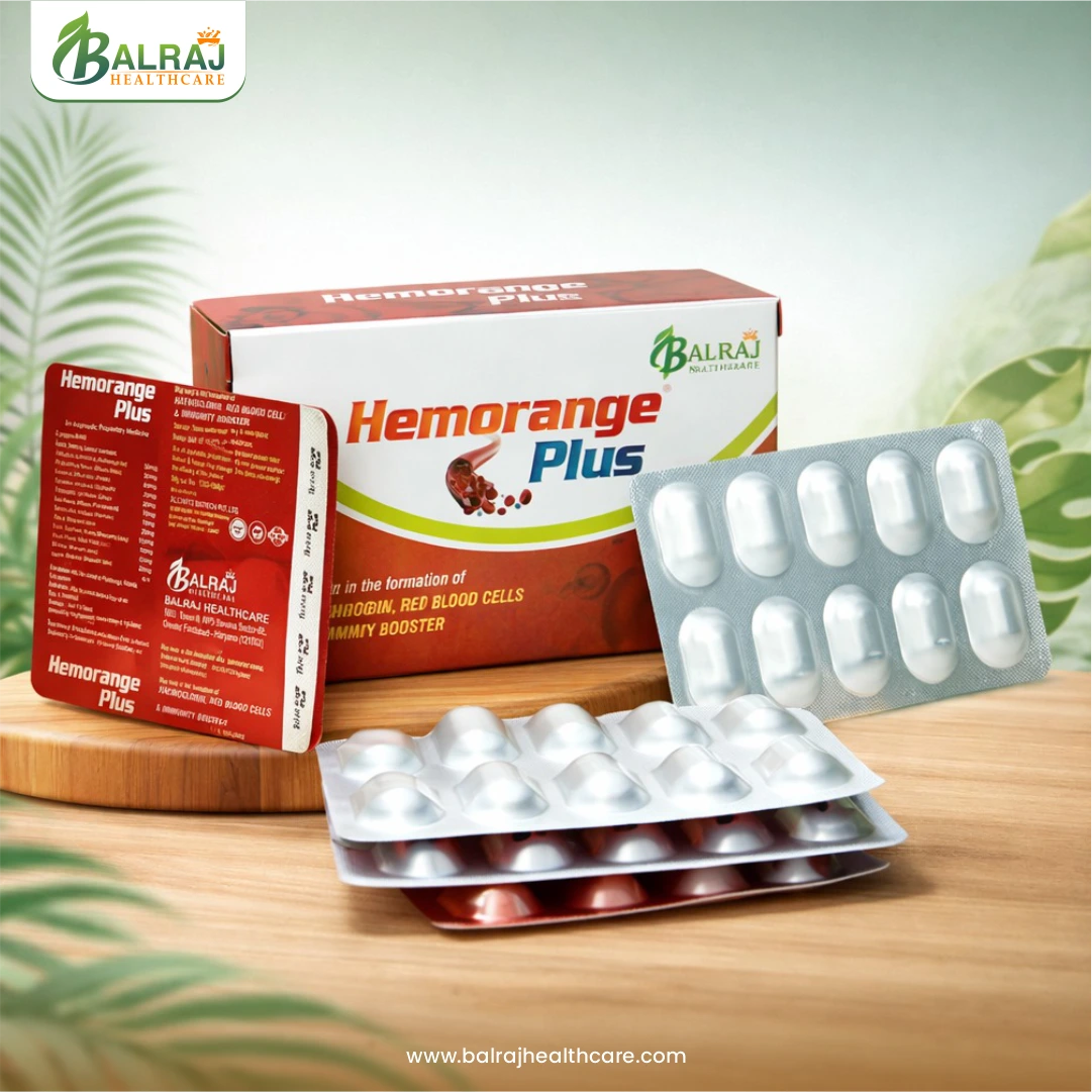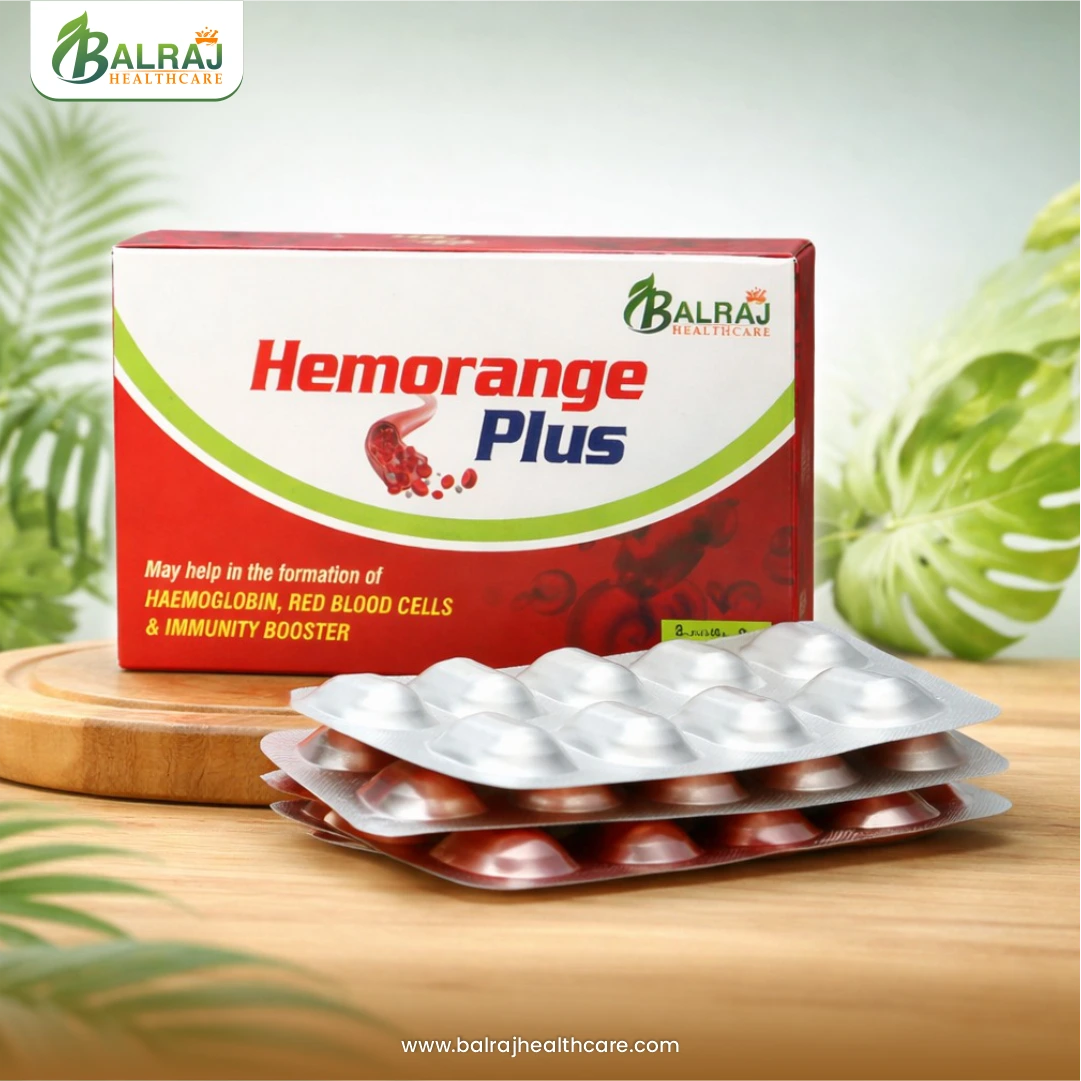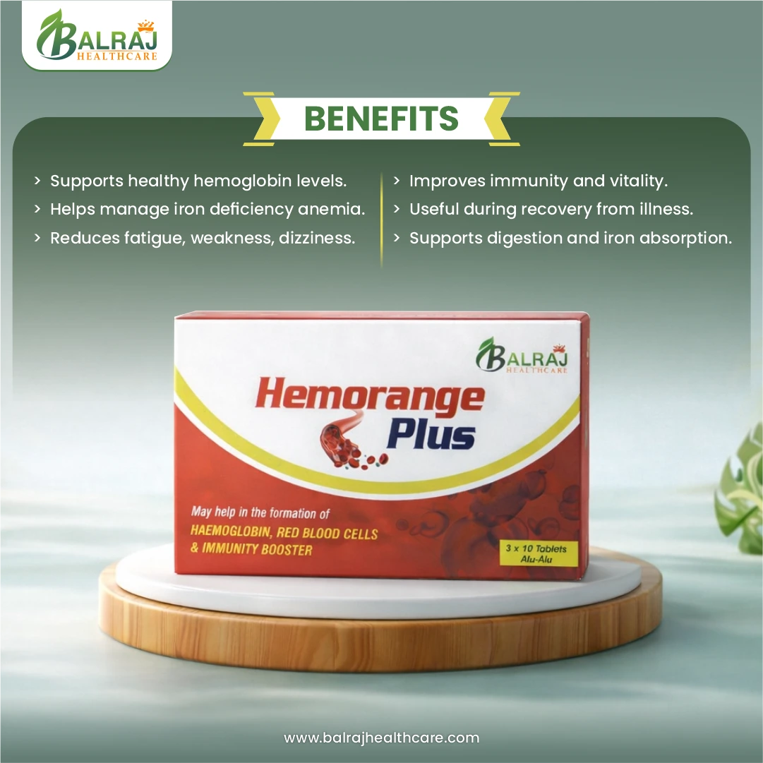 Rejuvenate your blood health naturally with Hemorange Plus Tablet, a powerful blend of essential nutrients and Ayurvedic ingredients designed to support healthy hemoglobin levels. Enriched with Iron, Folic Acid, Vitamin B12, and supportive herbs, it helps improve red blood cell production, combat fatigue, and enhance energy levels. Hemorange Plus Tablet aids better oxygen circulation, reduces weakness caused by anemia, and supports overall vitality. Safe for regular use, it promotes long-term blood health and daily wellness.